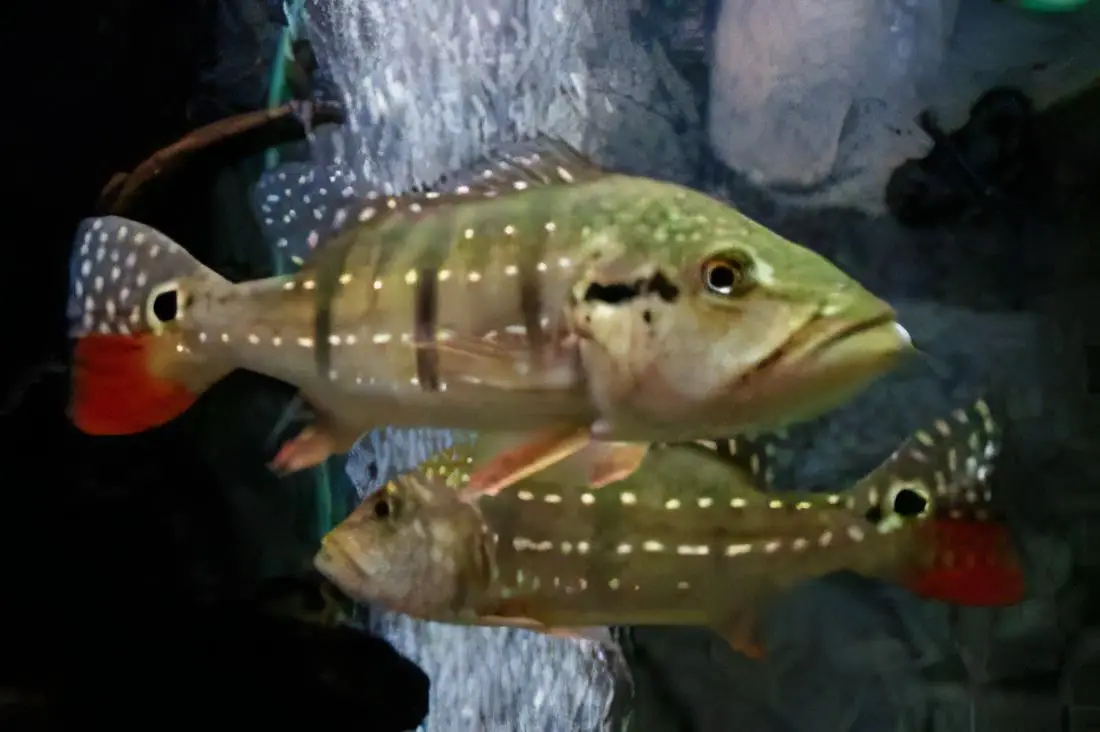 Diet: The Diamond Temensis Peacock Bass is a Predator and live fish eater, so feeder fish will be required. They will also typically accept frozen foods and pellets once trained.