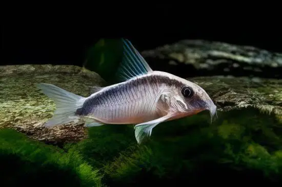 So-named because of its striking black arched markings, the Skunk Corydoras is a firm favourite with many. Ideally suited to mature softwater aquaria, this sociable species should be kept in groups of 5 or more. Unfortunately, this species is very prone to barbel infections/erosion, so it is of paramount importance that the fish are kept on a soft sand substrate (rather than gravel where waste can build up unseen) in order to protect these delicate sensory organs. Regular maintenance, including frequent partial water changes, should be carried out in order to keep these fish in good condition. The aquarium itself should be aquascaped with ample shady hiding spots underneath pieces of bogwood and plants. Large shoals of small midwater “dither fish” will encourage your Skunk Corys out into view more often. Other peaceful species such as some of the smaller fish from the pencilfish, tetra, and rasbora families make ideal tankmates. Corydoras have the ability to breathe air intestinally, so a small gap should be left between the surface of the water and the cover slides in order for the fish to come up to the surface and take air in. It may do this numerous times per day. This species has been misidentified as arcuatus for the last sixty years – it may be some time before exporters and labels catch up.