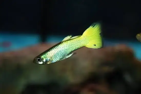 Yellow Metallic Male Guppy Poecilia Reticulata 3cm