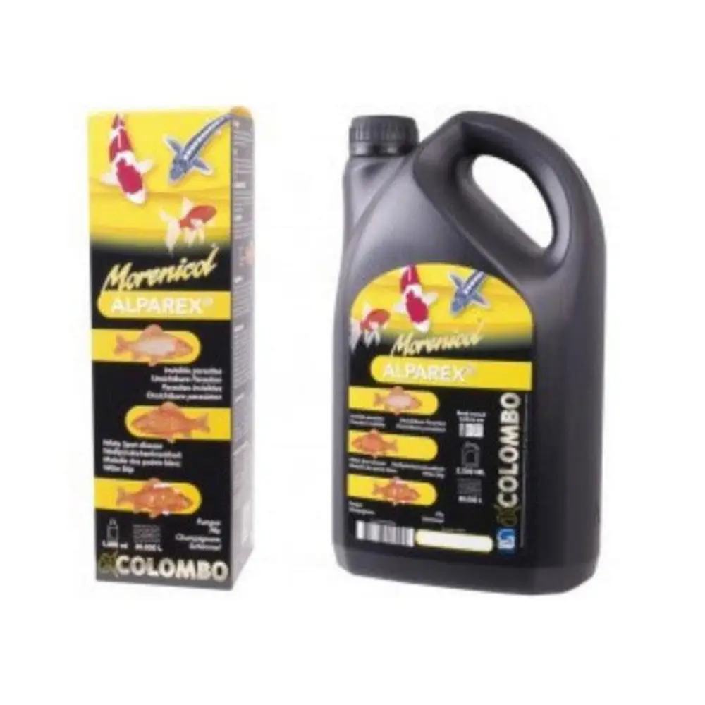 Colombo Alparex Dosage: Day 1 – 25ml per 1000 litres of pond water Day 2 – 25ml per 1000 litres of pond water Colombo Alparex Composition Acfriflavine HCL 20mg/ml Malachite Green 2mg/ml