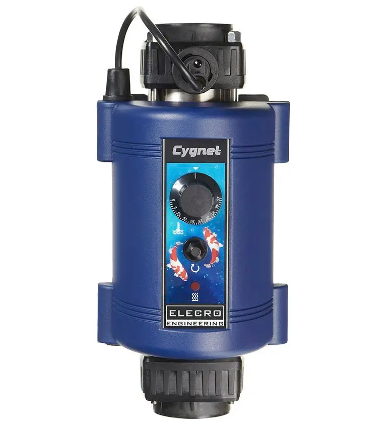 Specifically designed to ensure maximum safety, reliability and efficiency, the Cygnet Aquatic heater is user-friendly and offers ??plug & play?? installation for the 1-kW to 4-kW models.? The thermostat dial gives you control over the desired pond temperature, while the thermal cut-out protects against over-heating.