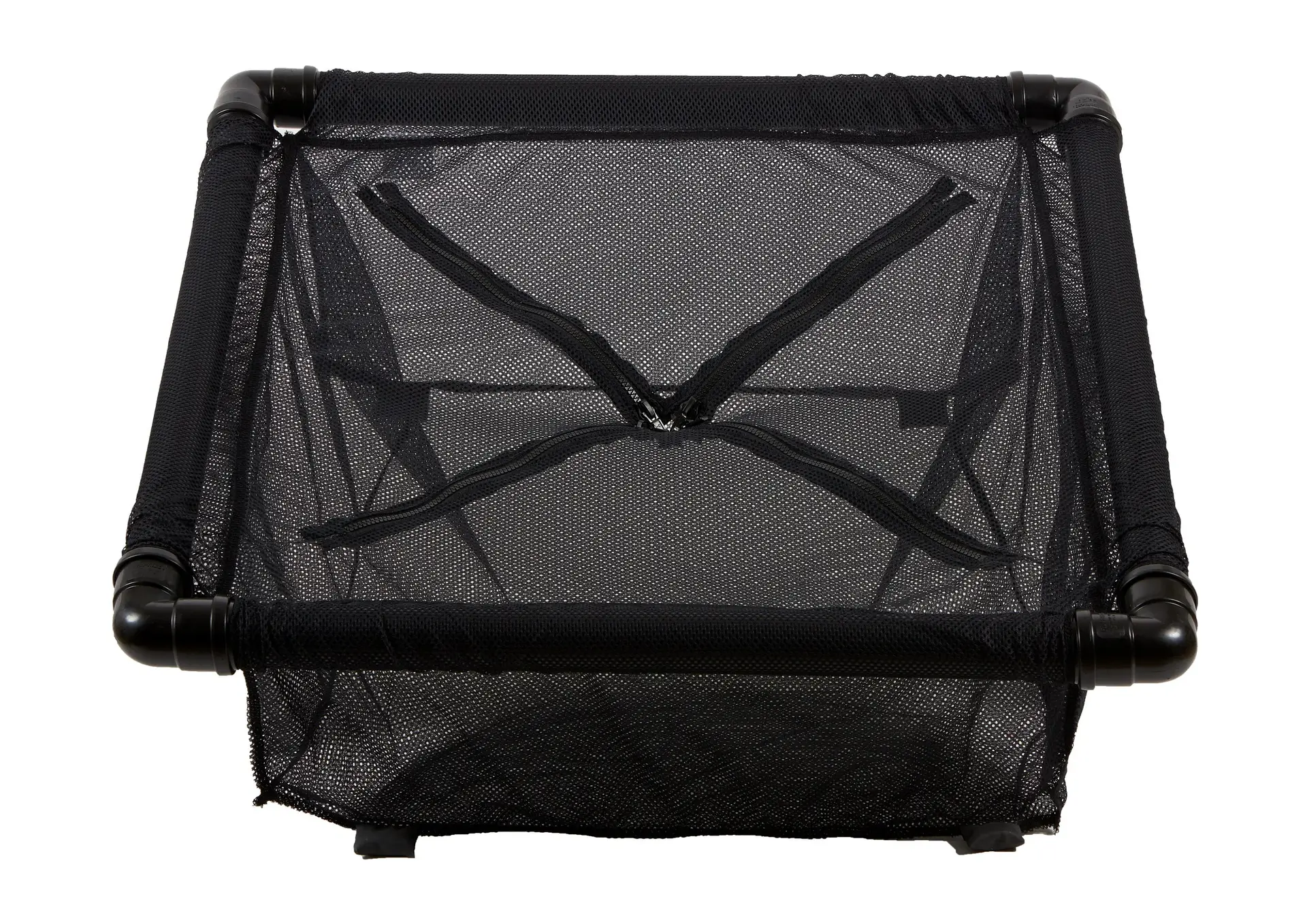This 2ft x 2ft x 2ft Japanese style containment zip cage utilises an innovative floating containment net, made with smooth Black 3mm mesh netting and a 40mm diameter floatation pipework frame. Small lead weights in the bottom corners provide additional stability, ensuring the bottom remains sunken.?