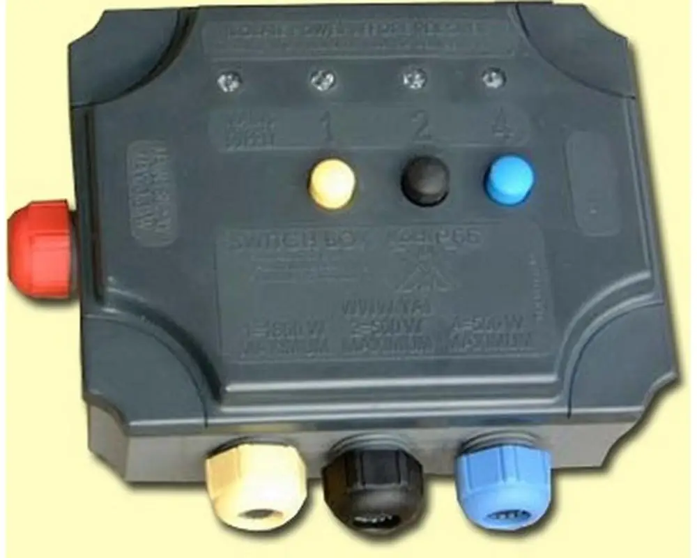 One of the switches is rated to 1,800 watts and the remaining tow are rated up to 500 watts each. The maximum current handling for the unit overall is 2,800 watts. All three switches are individually fused. It is supplied with a self locking wall mounting bracket, wall plugs and screws, so no holes have to be made in the main unit ensuring its water tight integrity. It also come with cable gland blanking plugs to seal unused outlets. Colour coded cable glands and switches enable rapid identification and simple installation. Each switch has its own illuminated indicator to let you know which appliances are on. The unit readily accepts cable sizes from 7mm to 12mm.