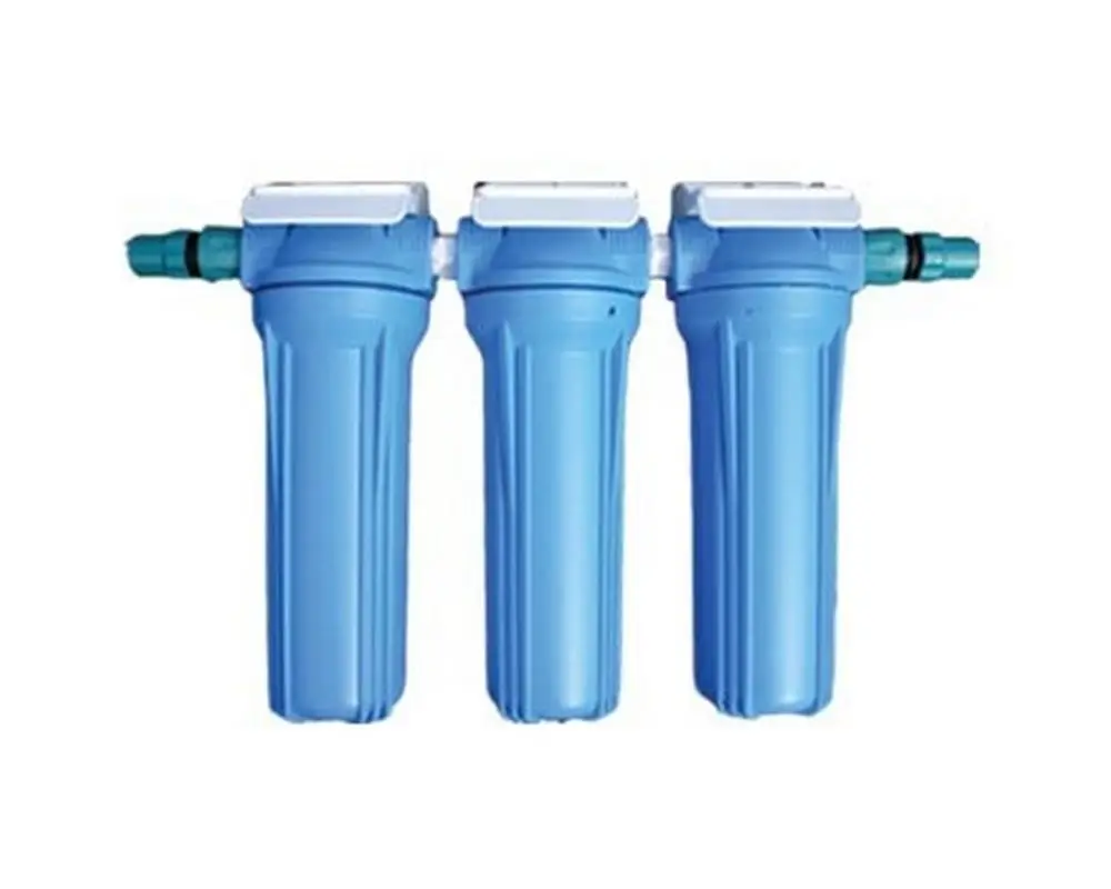 10?? x 2.5?? Triple Filter Housing System comes complete with a housing spanner and is pre-installed onto a mounting bracket. This system also benefits from having an air bleed valve at each stage of filtration. This feature helps to remove any potential airlocks from the system.?