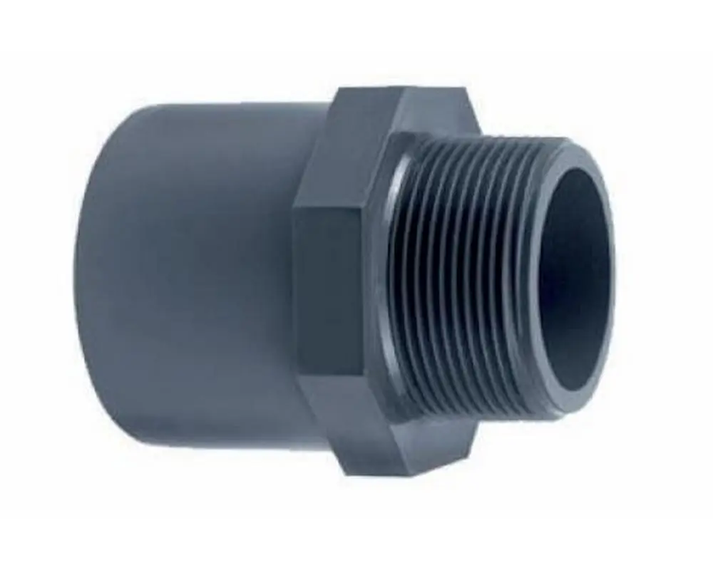 Dark grey 10 BAR PVC pressure fittings, produced in accordance to DIN standards. Suited for i.e. irrigation, swimming pools, ponds,