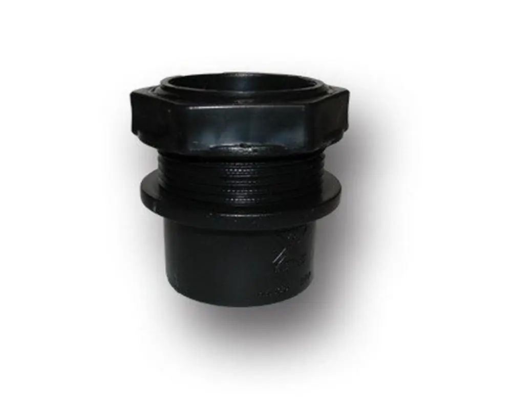 Tank/liner connectors. Solvent connection and threaded. Double connector is very useful for connecting filter units. For use with PVC glue.