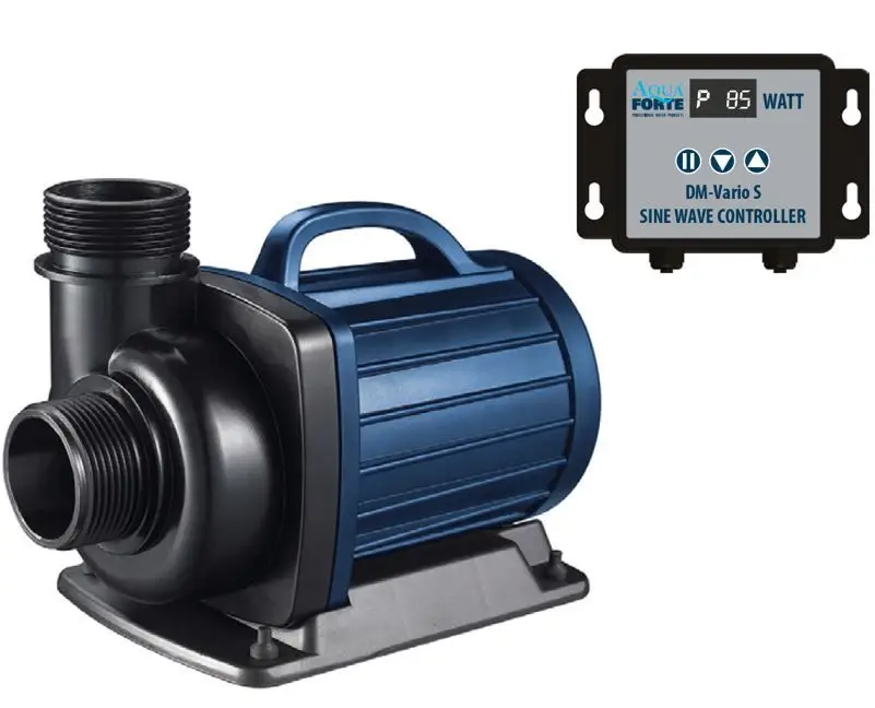 The DM-Vario S pumps are suited for outdoor use and are suited for wet & dry applications. With the external controller you can adjust the flow (and thus the energy consumption) from 30% to 100%. The controller can also start/stop the pump (pause button). Provided with synchronous motor and wearproof ceramic shaft for long time use. Automatic power-off protection when running dry. When the impeller is blocked it will go into a ??lock?? position in which the pump does not use power and waits until the blockage is gone. This will prevent a motor burn out.