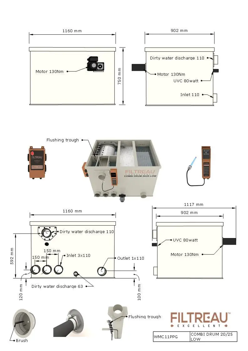 Promote the clarity and quality of your pond water with the COMBI DRUM 20/25 from Filtreau Excellent. Ideal for both mechanical and biological filtration, this filter system is guaranteed to contribute to an optimal habitat for all your flora and fauna in your pond.
