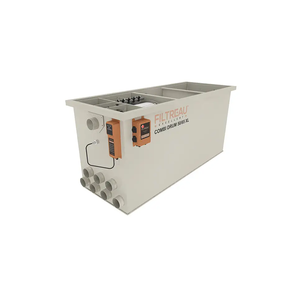 Promote the clarity and quality of your pond water with the COMBI DRUM 50/65XL from Filtreau Excellent. Ideal for both mechanical and biological filtration, this filter system is guaranteed to contribute to an optimal habitat for all your flora and fauna in your pond.