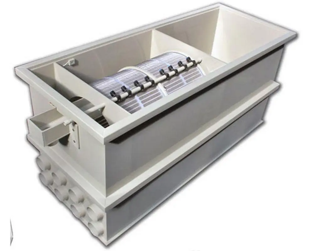 All SuperDrums are supplied with a cover, rinsing pump and control electronics, but without UV and biological filtration equipment.