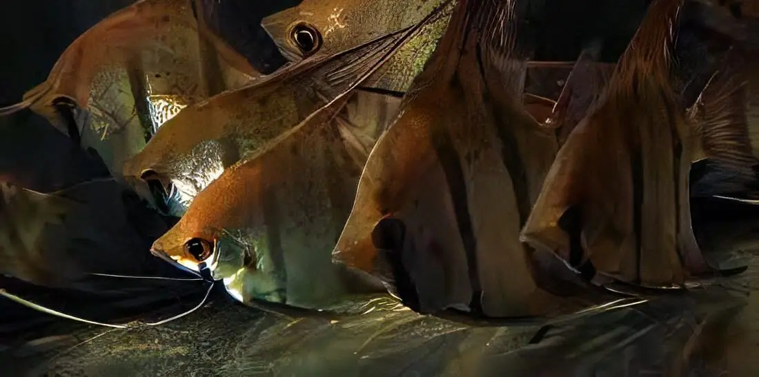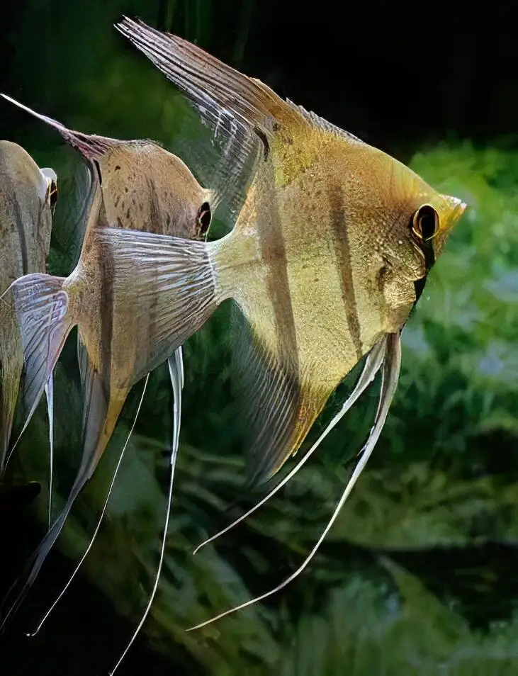 The Angelfish will thrive in a heavily planted aquarium with driftwood and/or rock formations and gentle water flow. It is not overly reclusive, but this fish strongly prefers the cover of plants and, due to its body shape, is not likely to seek refuge in rock caves and similar structures. The Angelfish is generally compatible with other peaceful fish as long as it has plenty of space. Territoriality is typically at its peak during spawning. Dwarf shrimp and other small, delicate invertebrates should not be kept with the Angelfish, but more durable, larger shrimp and snails could possibly make good tankmates in a large enough aquarium. If spawning is desired, tankmates of other species should be kept to a minimum or avoided altogether unless the aquarium is very spacious.
