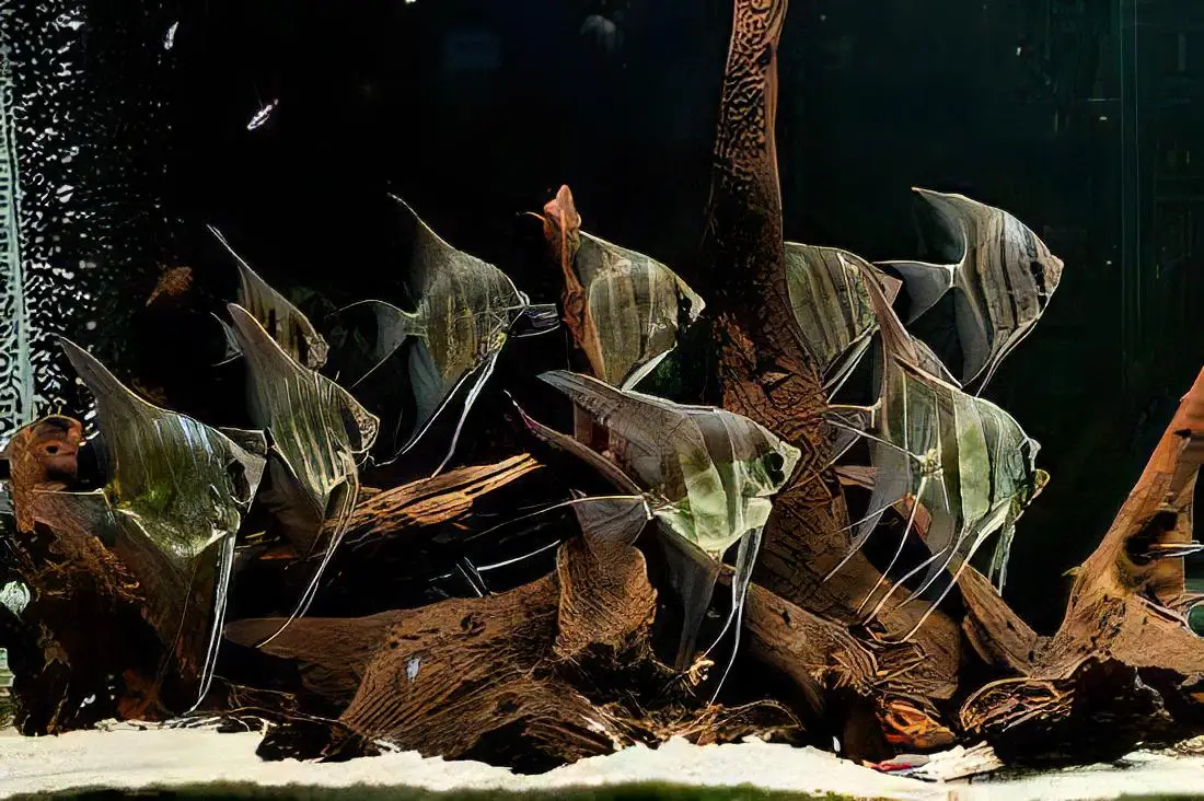 The Angelfish will thrive in a heavily planted aquarium with driftwood and/or rock formations and gentle water flow. It is not overly reclusive, but this fish strongly prefers the cover of plants and, due to its body shape, is not likely to seek refuge in rock caves and similar structures. The Angelfish is generally compatible with other peaceful fish as long as it has plenty of space. Territoriality is typically at its peak during spawning. Dwarf shrimp and other small, delicate invertebrates should not be kept with the Angelfish, but more durable, larger shrimp and snails could possibly make good tankmates in a large enough aquarium. If spawning is desired, tankmates of other species should be kept to a minimum or avoided altogether unless the aquarium is very spacious.
