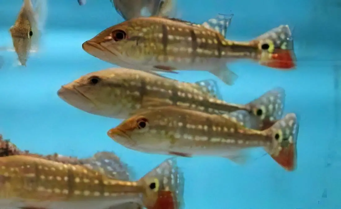 Diet: The Diamond Temensis Peacock Bass is a Predator and live fish eater, so feeder fish will be required. They will also typically accept frozen foods and pellets once trained.
