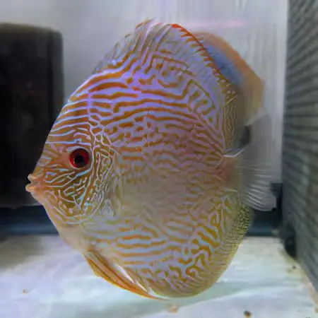 Perfect for intermediate hobbyists, the Snakeskin Fine Line Discus Cichlid requires a bit more attention to water quality and parameters. Keep the temperature between 82-88°F (28-31°C), maintain a slightly acidic to neutral pH (6.0-7.0), and ensure a soft to moderately hard water environment.