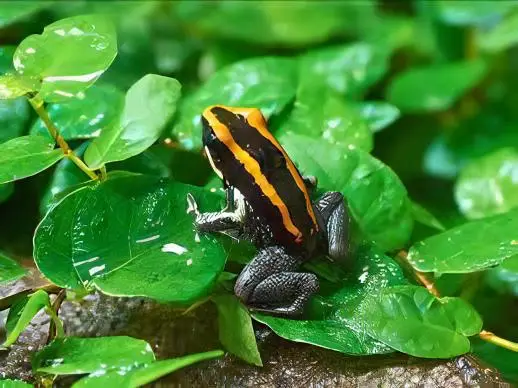 Overview: The Golfodulcean Poison Frog, known for its striking appearance and vibrant colors, is a captivating addition to any vivarium. Originating from the lush rainforests of Costa Rica and Panama, these small-sized frogs boast a mix of black and bright yellow stripes along their sleek bodies, making them an eye-catching display species.