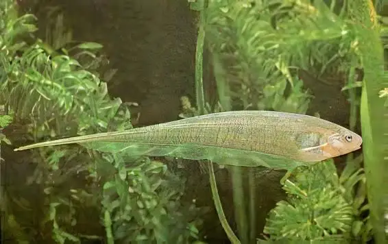 Overview: The Glass Rattail Knife Fish, Eigenmannia Virescens, is an elegant and captivating species known for its translucent body and elongated, ribbon-like tail. With its unique appearance and graceful movement, it adds a mesmerizing touch to any aquarium.