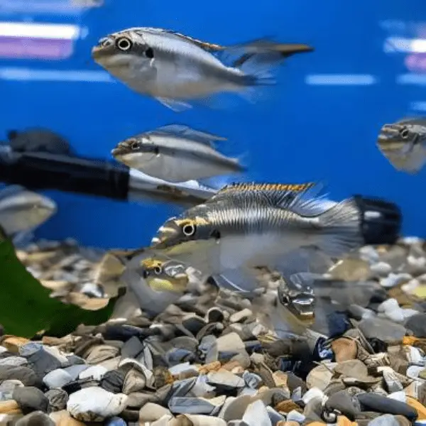 Kribensis Pulcher Blues are omnivorous and enjoy a varied diet. Feed them high-quality flakes, pellets, and occasional live or frozen foods such as brine shrimp and bloodworms to maintain their vibrant colors and health.