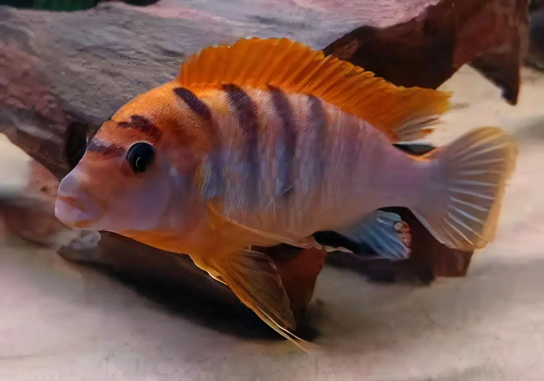 Origin: Originating from Lake Malawi in Africa, these cichlids thrive in rocky habitats amidst the clear, alkaline waters of the lake.