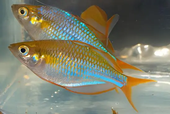 Sexual Dimorphism: Males more colourful with redder finnage, also becoming deeper bodied with age. Females with orange-yellow finnage trimmed with silver.
